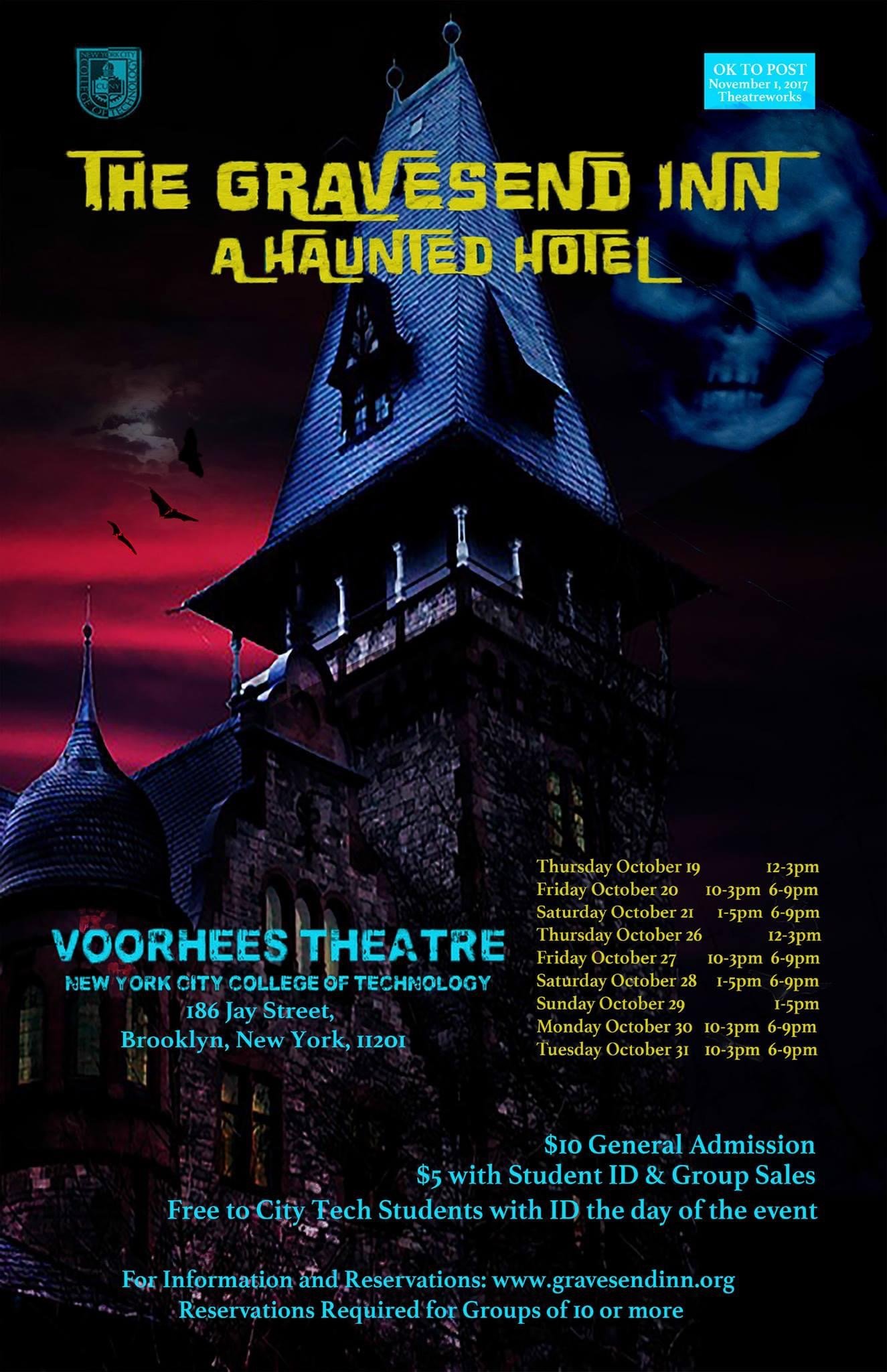 It is the most fun event of the year for our department. The event every student came together to work on showcasing their dedicated talent and expertise to create the Gravesend Inn Haunted House experience in the Voorhees Theatre in Downtown Brooklyn